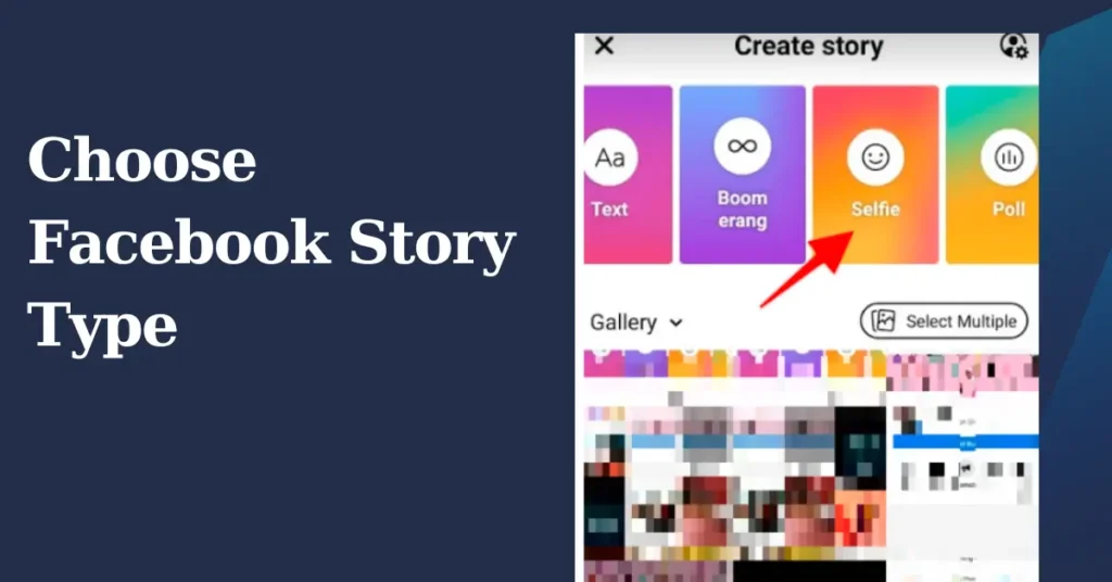 When you start facebook story creation, you can choose different types of content formats and click on photos or videos from your gallery. Facebook feature such as formats and tools for your stories content: